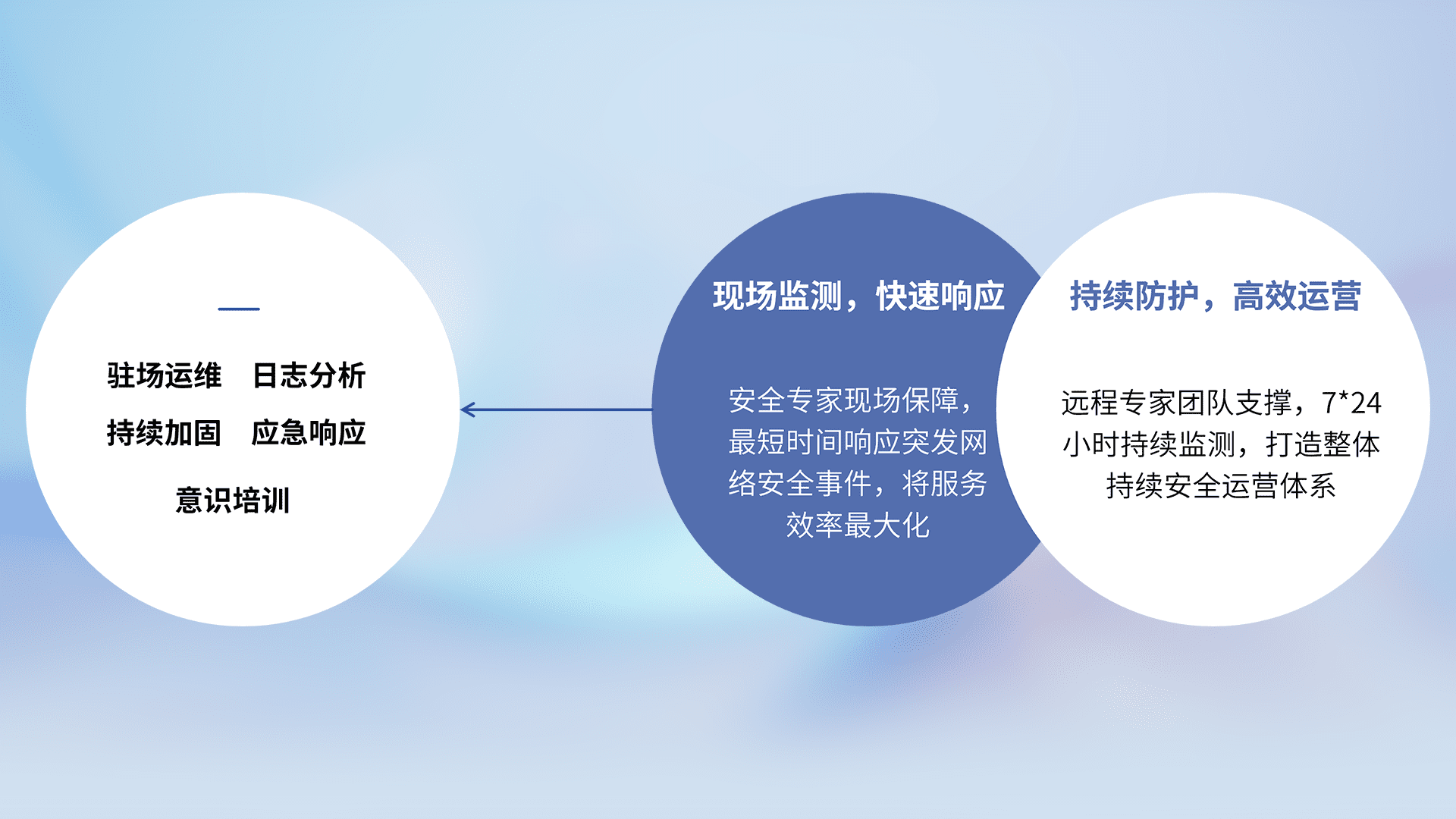 7X24小时持续监测安全事件,保持安全策略有效性,降低资产脆弱性风险,,,,精准拦截黑客攻击,,,减少被黑客利用的机会,,,第一时间遏制,,,,降低损失。。。。
